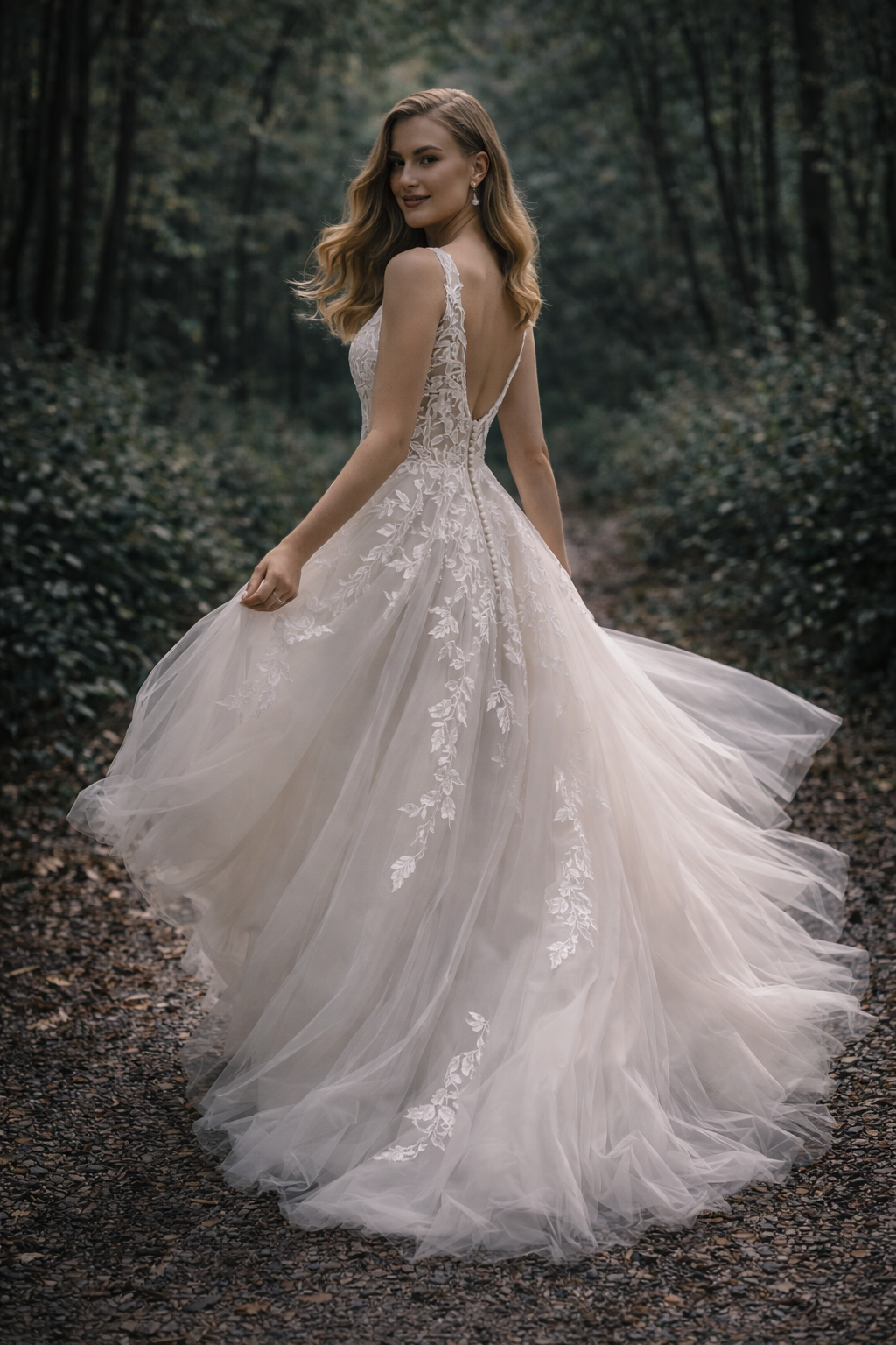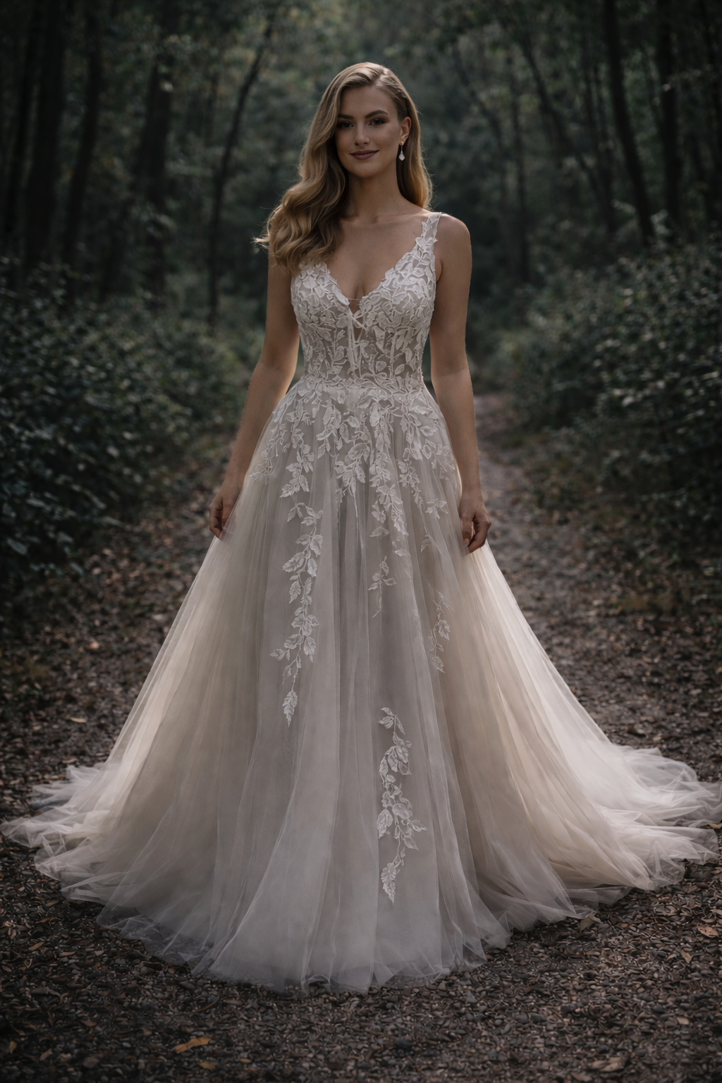 Perfect for the bride who loves romance inspired by nature, this gown is ideal for forest, garden, or outdoor weddings. Soft, graceful, and timelessly elegant.