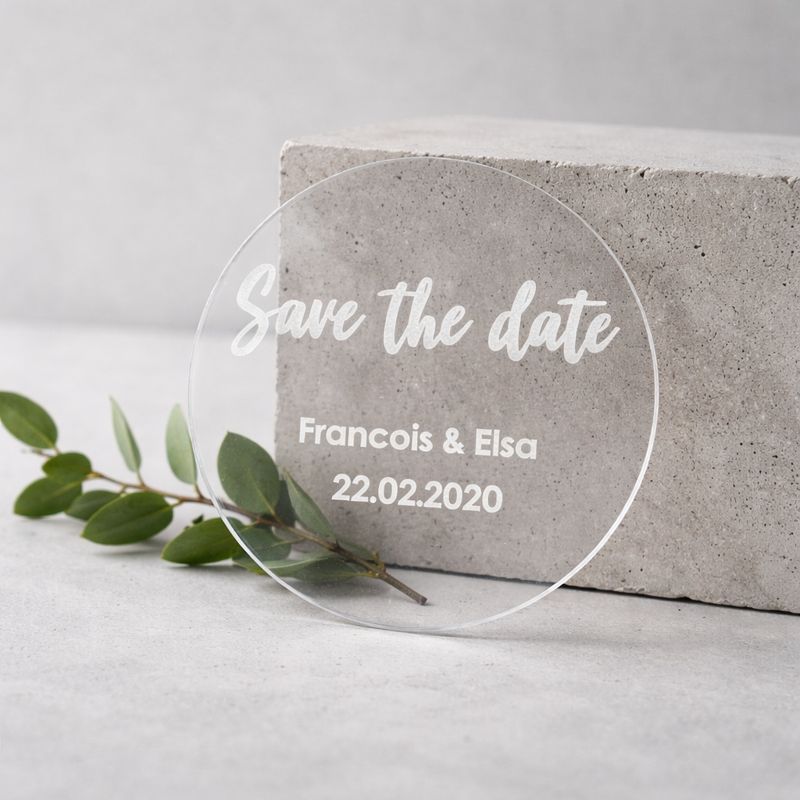 Ideal for modern, minimalist, and luxury weddings, this acrylic save the date can be displayed in homes long after your wedding day — a timeless reminder of what’s to come.
