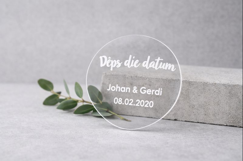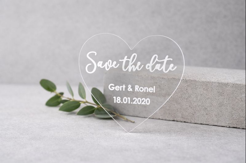 Crafted from premium acrylic, this elegant piece offers a clean, contemporary alternative to traditional paper stationery. Personalised with your names and wedding date, it’s the perfect way to announce your celebration while giving your guests something beautiful to keep.