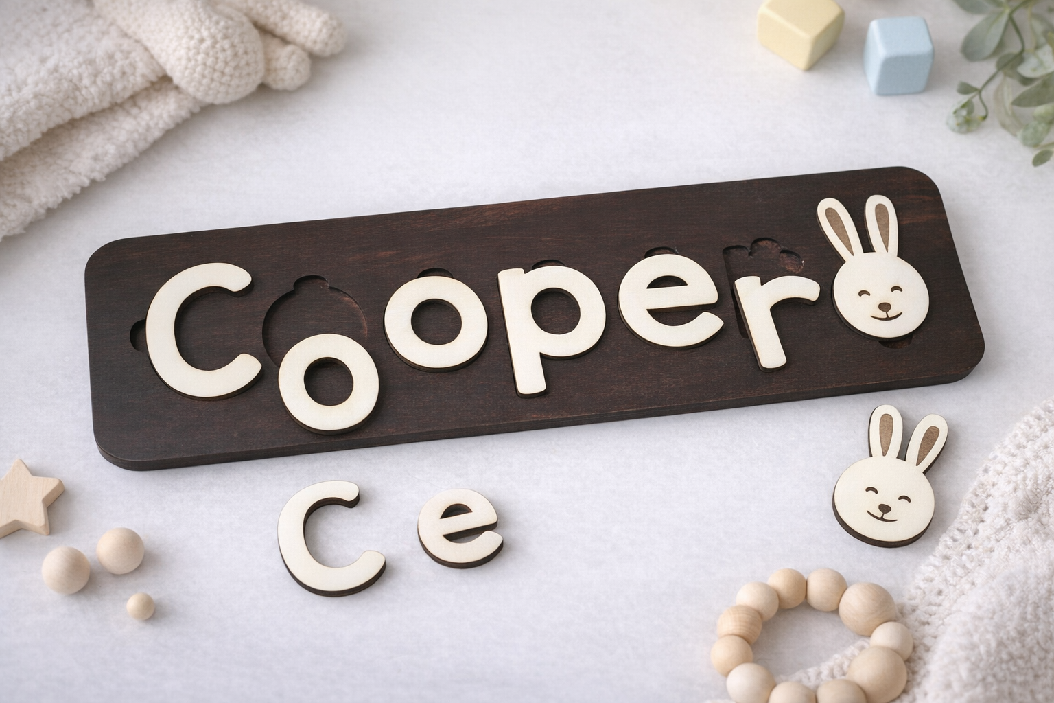 Our Children’s Name Puzzle is a fun, personalised learning toy designed to support early development through play. Each puzzle features your child’s name, helping them recognise letters, practice spelling, and build fine motor skills in a playful, hands-on way.